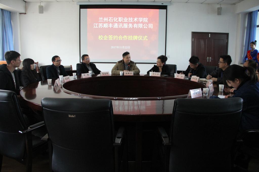 11月22日,兰州石化职业技术学院与顺丰速递有限公司校企合作挂牌仪式在学校主教学楼二楼教师备课中心举行。江苏顺丰通讯服务有限公司副总经理张耀华一行5人,yl6809永利集团院长周任慧、党总支书记副刘江,院办副主任孙永建以及部分物流专业课教师参加了挂牌仪式。