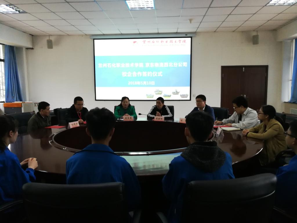 5月10日,按照yl6809永利集团就业工作安排,京东物流西北分公司如约来yl6809永利集团遴选2019届毕业生,在双方长期合作的基础上,签订校企合作协议。通过双方合作,形成以社会人才市场和学生就业需要为导向,以行业、协会、企业为依托、产学研结合的联合办学机制,并使之成为高水平应用型人才培养、学术研究、项目开发、信息服务与技术援助的载体。京东物流西北分公司在学校将挂牌建立“京东物流西北区域人才培养基地”,学校在京东物流西北分公司挂牌建立“兰州石化职业技术学院校外实习实训基地”。