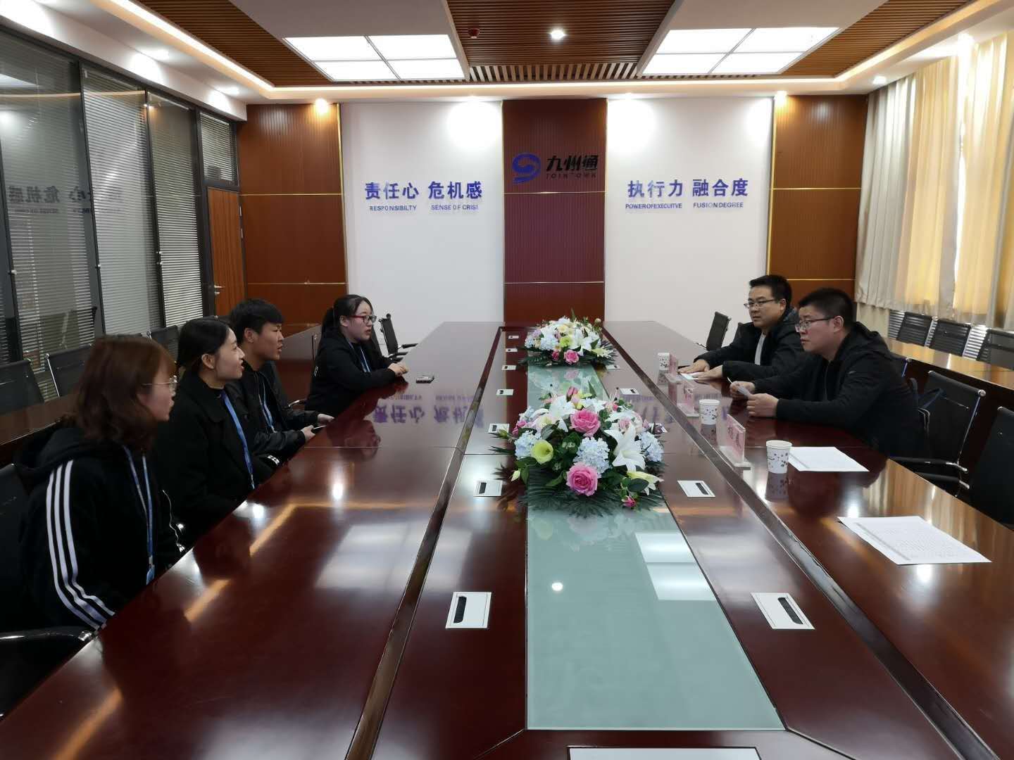 3月22日,刘江一行到九州通医药集团兰州分公司进行走访,与我校yl6809永利集团2013年以来在该企业就业的16名同学进行座谈,了解学生就业发展情况。同时与九州通兰州分公司人事经理李江等人进行座谈,了解企业用人计划,学生培养与校企合作等事宜。通过走访,了解到在九州通等企业,我校毕业生在就业满意率,学生发展等方面得到很大提升。同时收集了大量的毕业生跟踪调查数据,为更好的做好就业工作打下基础。
