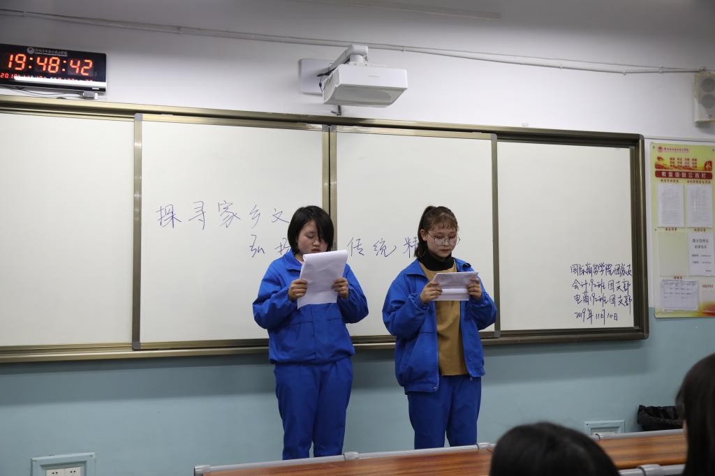 本次活动每个班级别出心裁,以自己的家乡文化为主题,创作出一幅幅精美的海报。各班级的节目表演让人振奋,爱国歌曲更感受到了祖国母亲的伟大。本次活动中学生们踊跃参加、积极向上,弘扬传统精神牢记家乡文化,牢记祖国的传统精神。