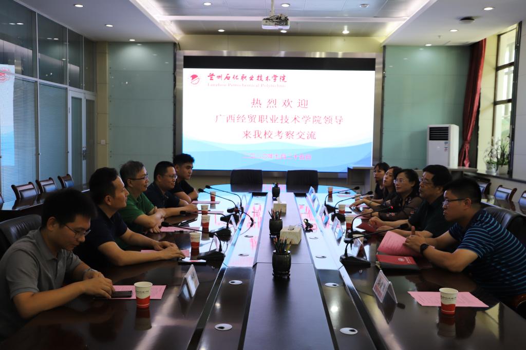 7月25日,广西经贸职业技术学院副校长林震、北京博导前程信息技术股份有限公司总裁段建一行5人来我校考察交流,我校党委委员、纪委书记蒲卫晖,yl6809永利集团、国际教育学院负责人陪同来宾参观中国文化体验馆、大学生创新创业实践教学基地、电子商务综合实训基地、金融实训基地和物流综合实训基地。参观后,来宾对我校实训基地建设、校园文化建设给予肯定和高度评价。随后,在学校广汇厅进行了座谈交流。