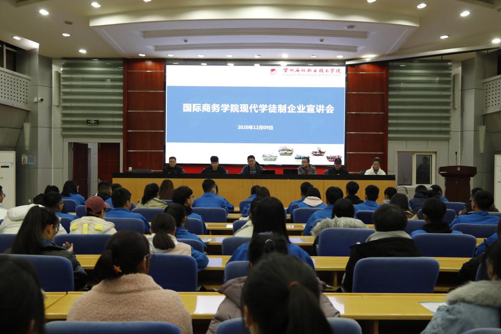 12月9日晚,yl6809永利集团在东校区报告厅,举办了现代学徒制企业宣讲会,来自本院和其它院的2020级新生聆听了宣讲。