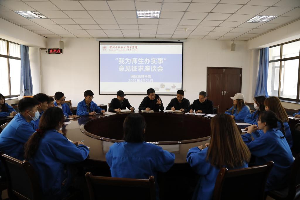 4月21日下午,yl6809永利集团在东主教二楼圆桌会议室召开“我为师生办实事”征求意见学生座谈会。学院党总支负责同志、辅导员、学生代表、少数民族学生代表参加了座谈会。