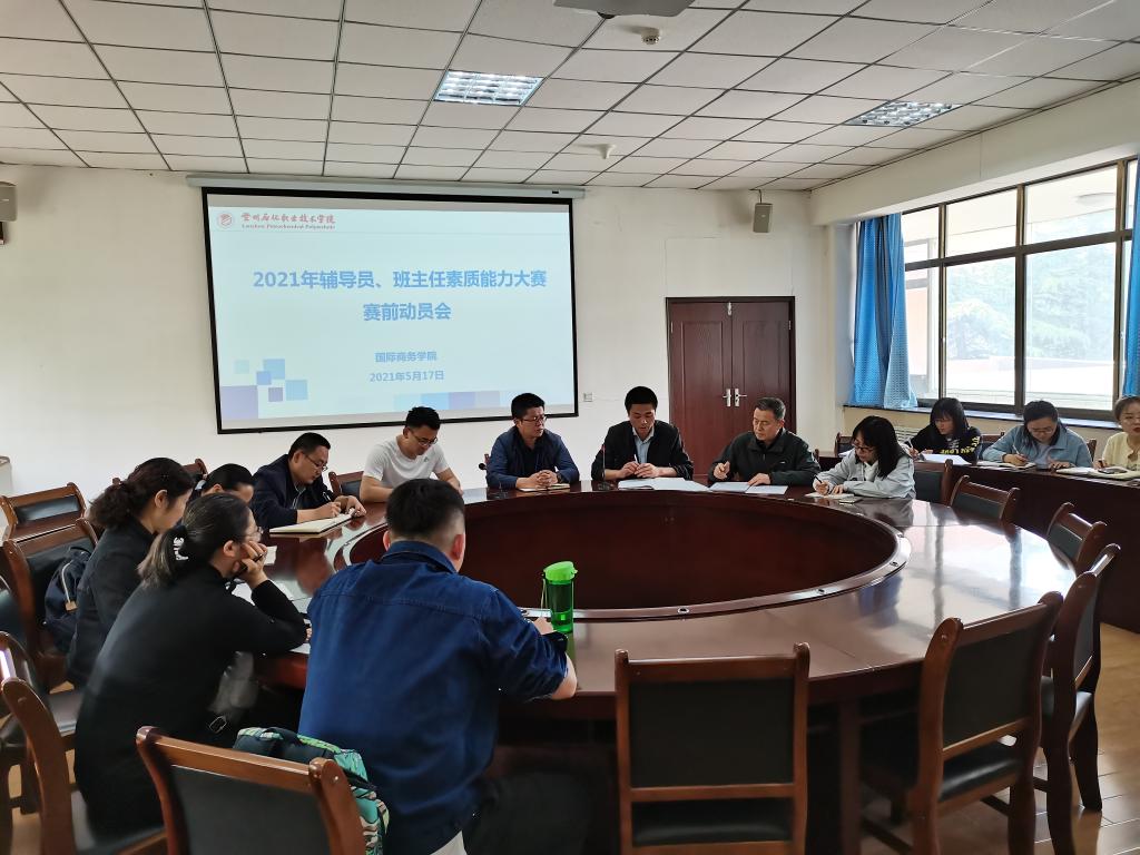 5月17日下午,yl6809永利集团在东区主教学楼二楼圆桌会议室,召开2021年度辅导员、班主任能力素质大赛赛前动员会,学院学生工作负责同志、辅导员和全体班主任参加了会议。
