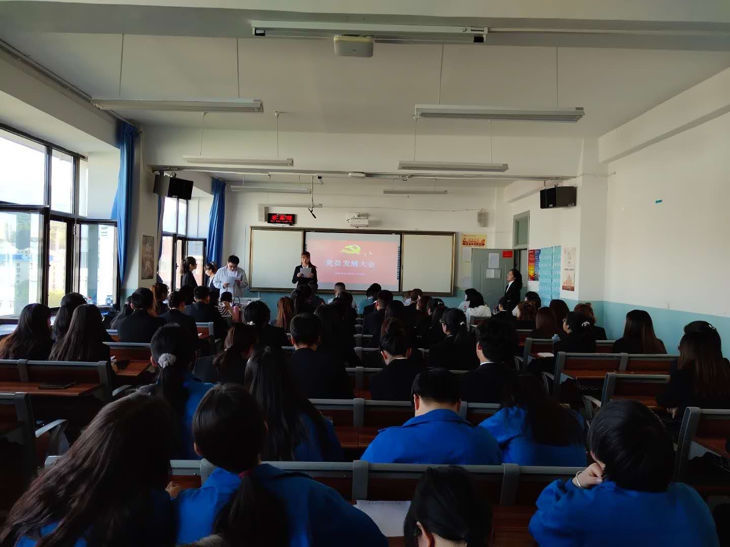 会议严格按照规定程序进行。首先由学生党支部负责人详细报告会议议程,通报与会人数等情况,随后,各发展对象宣读了《入党志愿书》,汇报了自己对党的认识、入党动机、以及现实表现,汇报了自己在学习、工作、生活上的收获及需要改进的地方;入党介绍人对发展对象的培养考察情况做了介绍,并对其能否入党表明意见;与会正式党员进行了表决。