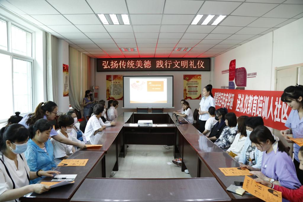 近日,yl6809永利集团教师、中华礼仪公益讲师团张华、张正蒙老师带领学校晨旭礼仪团队开展了文明礼仪进社区志愿者公益服务活动,为兰州市西固区玉门街北社区进行了“弘扬传统美德 践行文明礼仪”的教育培训。