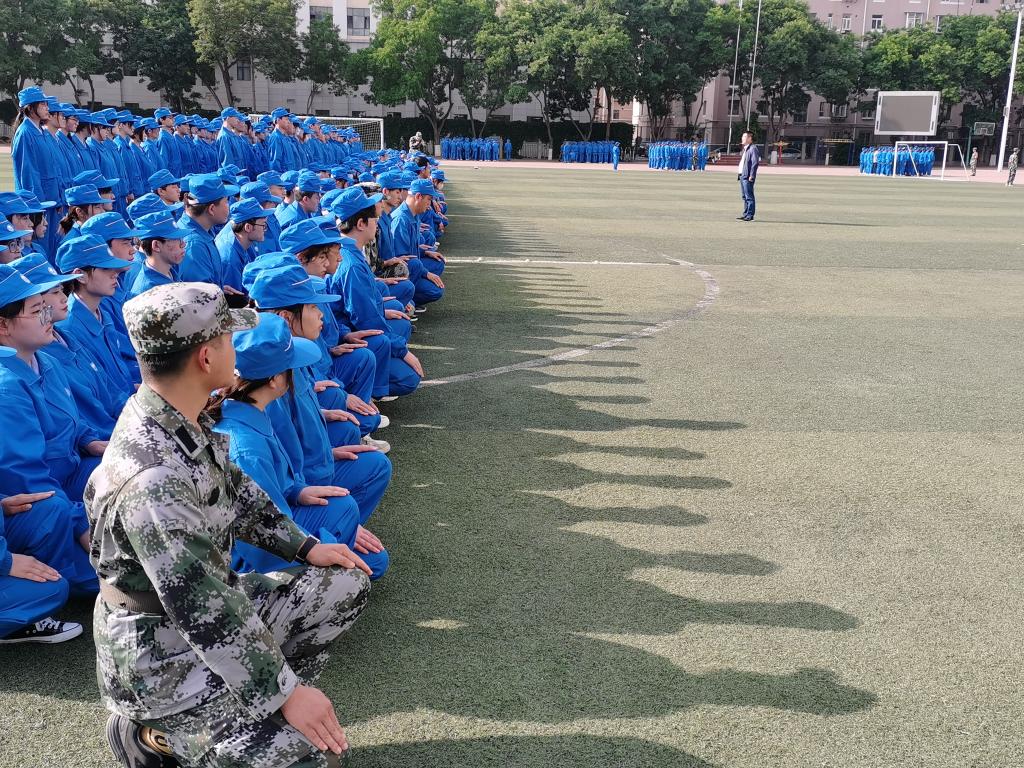 动员大会结束后,参与军训的老师、同学便以饱满的精神状态走向训练场,以热火朝天的训练热情展开了军事基础动作训练。