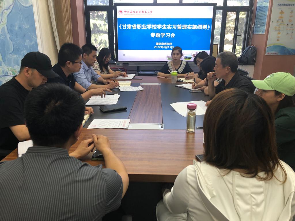 6月15日中午,yl6809永利集团在东区主教学楼三楼会议室召开会议,组织全体班主任重点学习甘肃省教育厅等八部门联合下发的《甘肃省职业学校学生实习管理实施细则》。学院学生工作负责人、辅导员、全体班主任参加了会议。