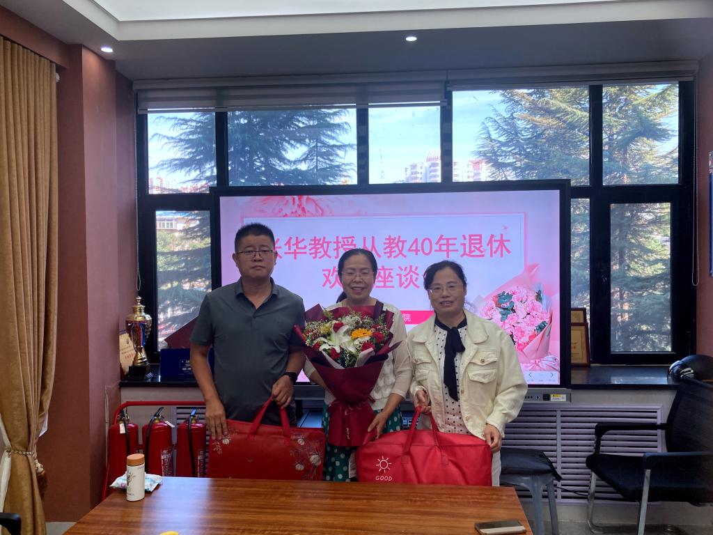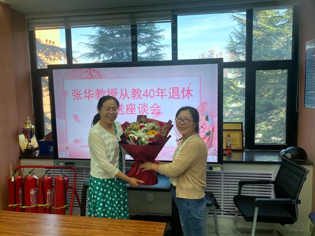 座谈会上,学院负责人为张华送上了节日礼物、青年教师代表为张华献上鲜花表达敬意与节日祝福。