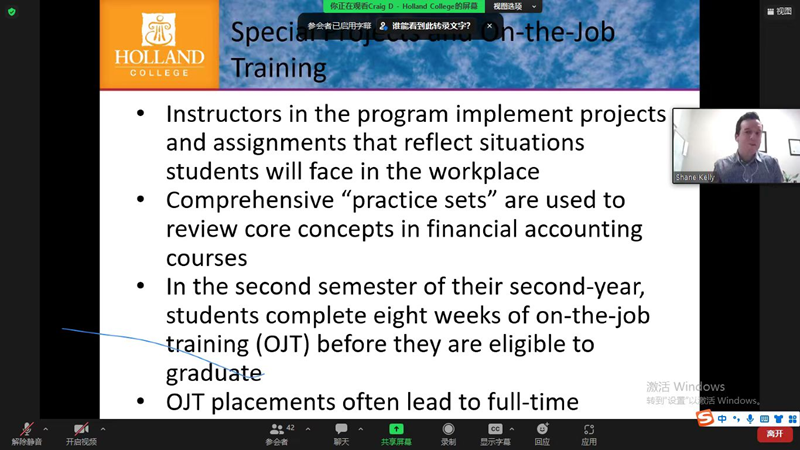 为进一步提升教师双语教学能力,促进国际化办学水平,全面提高中外合作办学质量,yl6809永利集团与加拿大荷兰学院多次协商对学院34位教师开展为期一个月的双语师资培训。本次培训将分四次,从“会计专业与技术概览”“直播与面授教学法”“课堂英语口语教学”“第二语言开展职业培训的有效教学法”四个课题对教师开展培训。