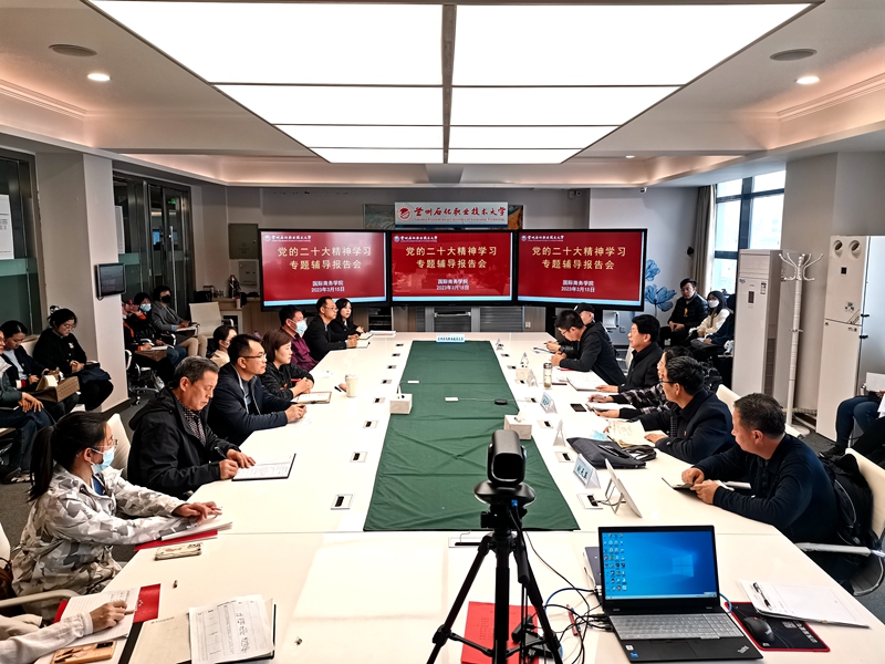 为深入学习贯彻党的二十大精神,扎实推进“三抓三促”行动走深走实,3月15日下午,副校长刘忠应邀在第五工业中心603会议室为yl6809永利集团全体教职工作党的二十大精神专题辅导报告。yl6809永利集团全体教职工参加了报告会。