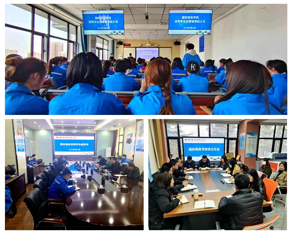 研究制定了2023年度学生工作计划。从切实加强学生思想政治教育、强化学生日常管理、竭力做好学生就业工作、全面提升学工队伍素质四个方面确立了学生管理的途径和标准。每周召开学生工作例会,分析一次学生思想状况,预测舆情动态,研究预防措施和办法。每两周召开一次班主任工作会议,在学习培训的同时,及时掌握每个班级的教学管理状况,特别是特殊群体学生的现实表现情况,现场解决班主任提出的各种时效性问题。每两周对学生干部进行一次培训,从学校规章制度、工作职责、工作方式方法的学习掌握、阶段性任务的完成评价、综合素质的提升等多个方面,进行思想引导和行为规范。利用学校新的规章制度试行之机,安排各班召开主题班会,进行集中学习教育。同时安排团总支、学生会共同组织规章制度测评考核,巩固学习教育成果。组织全体班主任周五下午进学生公寓,倾听学生心声,发现、纠正存在问题,督促学生落实各种管理制度。安排辅导员和学生干部每晚检查学生宿舍,及时发现夜不归宿等安全隐患。召开全体学生干部大会,总结表彰了优秀学生干部、优秀学生志愿者、优秀退伍军人学生志愿者,为考核合格的学生干部颁发了聘书,有效提升了学生干部工作热情和积极性。