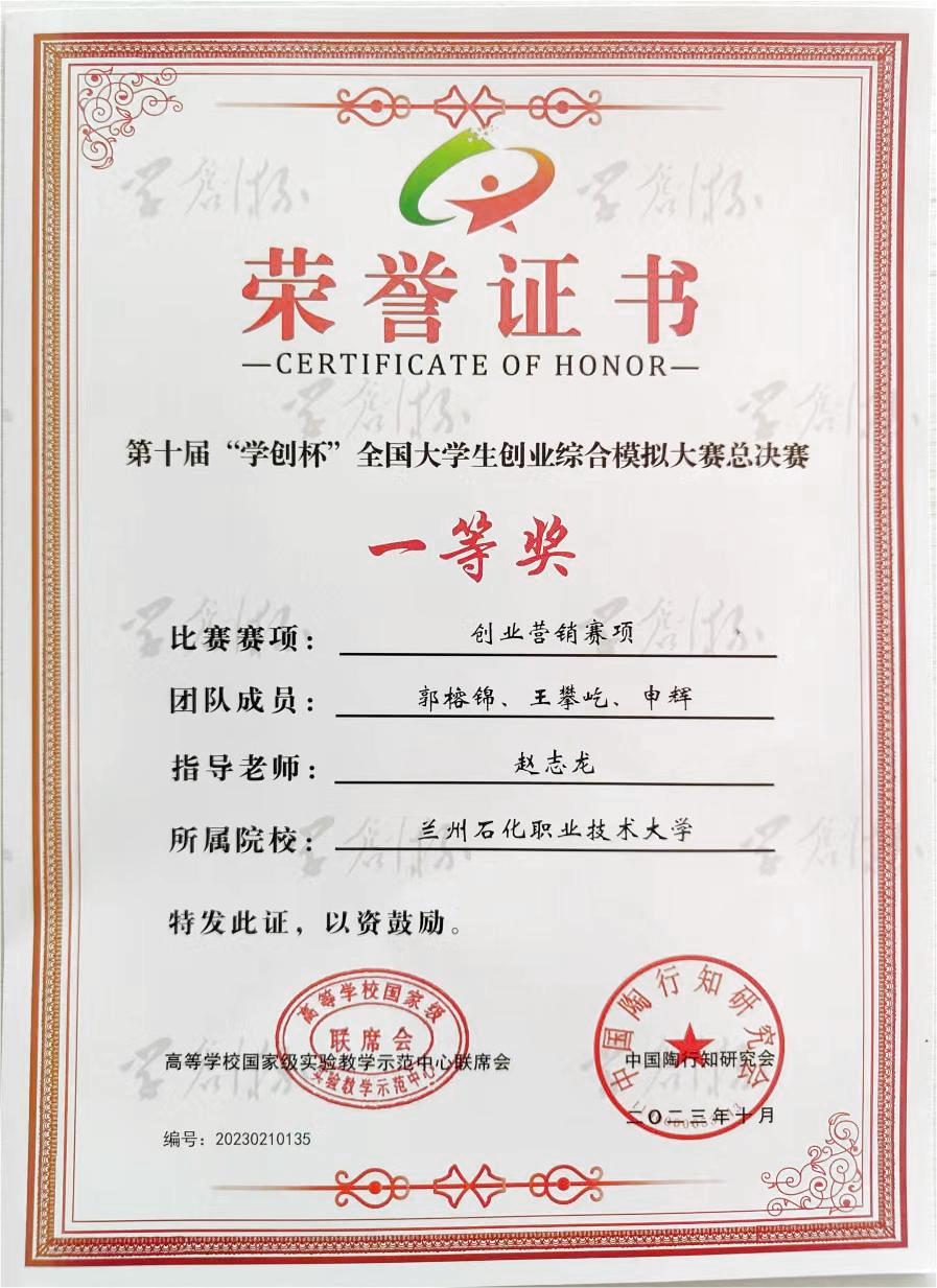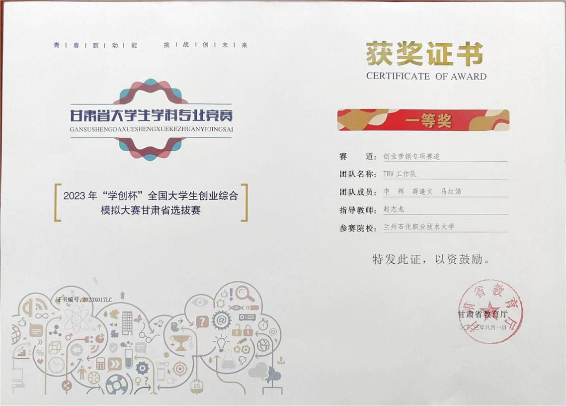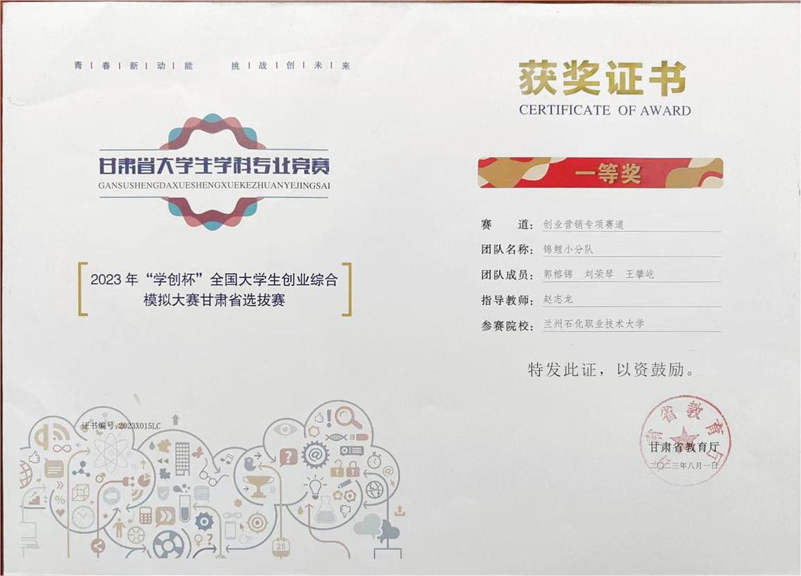 创新创业大赛获奖证书展示