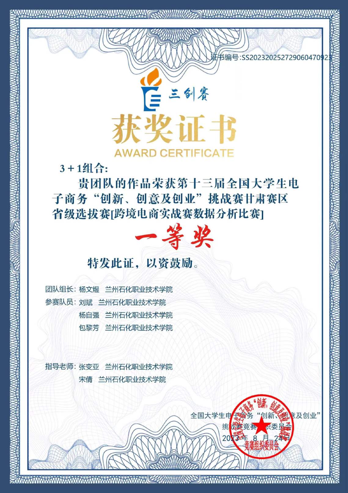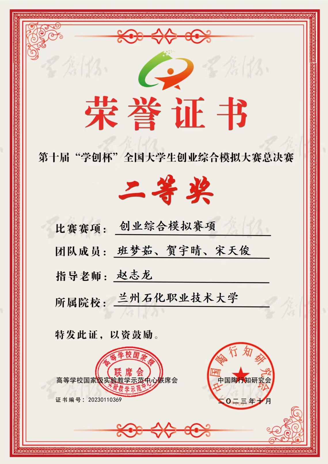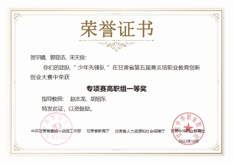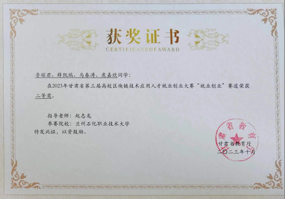 创新创业大赛获奖证书展示