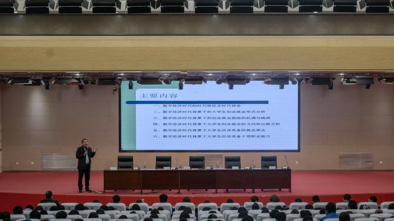 在职业规划与就业指导环节,学院邀请甘肃青年创业就业服务中心主任、国际一级职业指导师、人力资源管理师杨涛以数字经济时代背景下大学生创业就业为主题,为同学们带来了一场精彩的就业形势分析与求职技巧讲座。他结合当前国际商务领域的就业市场现状,深入分析了就业形势和行业发展趋势,为同学们提供了实用的求职建议和策略。通过实际案例分享,让同学们了解如何在激烈的就业竞争中脱颖而出。此外,他还鼓励同学们树立正确的就业观念,积极调整心态,勇于尝试不同的就业机会,抓住机遇实现自己的职业梦想。