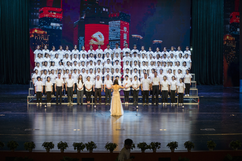 赓续红色血脉,激扬时代精神:晚会在师生党员代表气势恢宏的大合唱《没有共产党就没有新中国》和《祖国不会忘记》中拉开序幕。激昂的旋律、深情的演唱,唱出了对党的无限忠诚与热爱,瞬间点燃全场热情,凝聚起奋进力量。