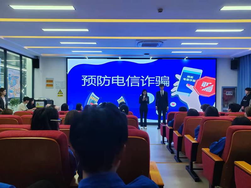 比赛过程中,各班级代表队展开激烈角逐,现场气氛紧张而热烈。在“抢答挑战”环节,选手们思维敏捷、反应迅速,展现出扎实的知识储备;随后的“情景模拟”环节则将竞赛推向高潮,通过模拟“冒充客服退款”、“虚假中奖诈骗”等真实案例,考验了选手们在面对诈骗话术时的临场应变与处置能力。为扩大活动覆盖面,情景模拟环节还穿插了互动问答,台下学生踊跃参与,争相作答,在寓教于乐的活跃氛围中,进一步普及了“不听、不信、不转账”等关键反诈知识,起到了良好的警示教育效果。