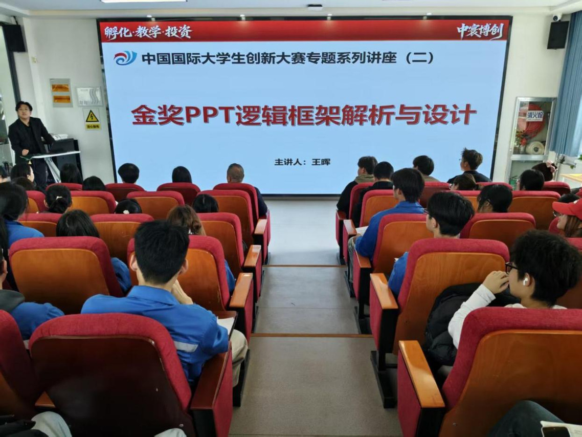 培训会上,王晖老师围绕大学生创新创业大赛PPT路演逻辑与制作方法展开系统讲解。从封面设计的要素规范、亮点概述的精准呈现,到市场背景与政策分析的数据支撑、痛点提炼与技术解决方案的对应逻辑,再到商业模式的清晰拆解、团队介绍的重点突出、财务预测的科学合理及社会价值与个人成长的多维展现,王晖老师结合国家级金奖案例,逐一拆解路演核心模块的关键要点。